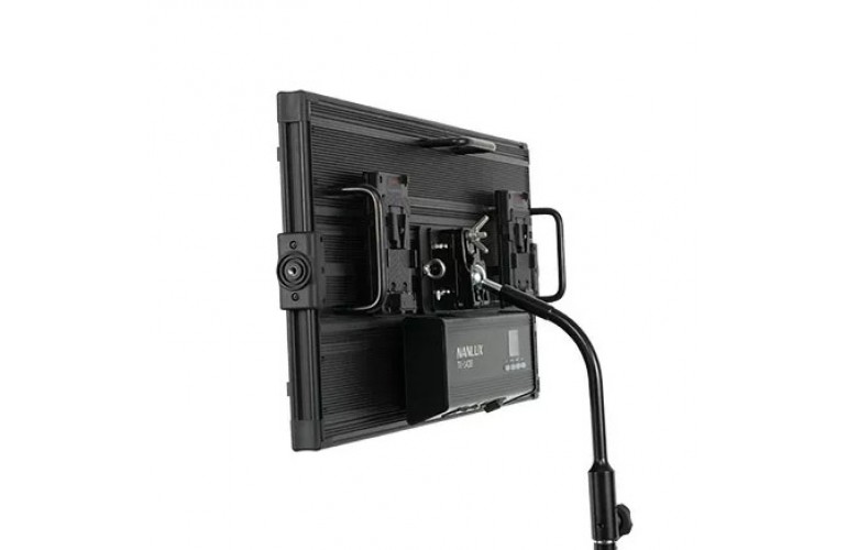 The Central Mount with Ball Head and Gooseneck for TK-140B & TK-280B from Nanlux can be mounted in the center at the back of the fixture, to a stand, or to any similar support with an industry-standard 5/8" receiver or junior pin 3/8" receiver. The ball head and gooseneck provide placement options not available with a standard yoke.